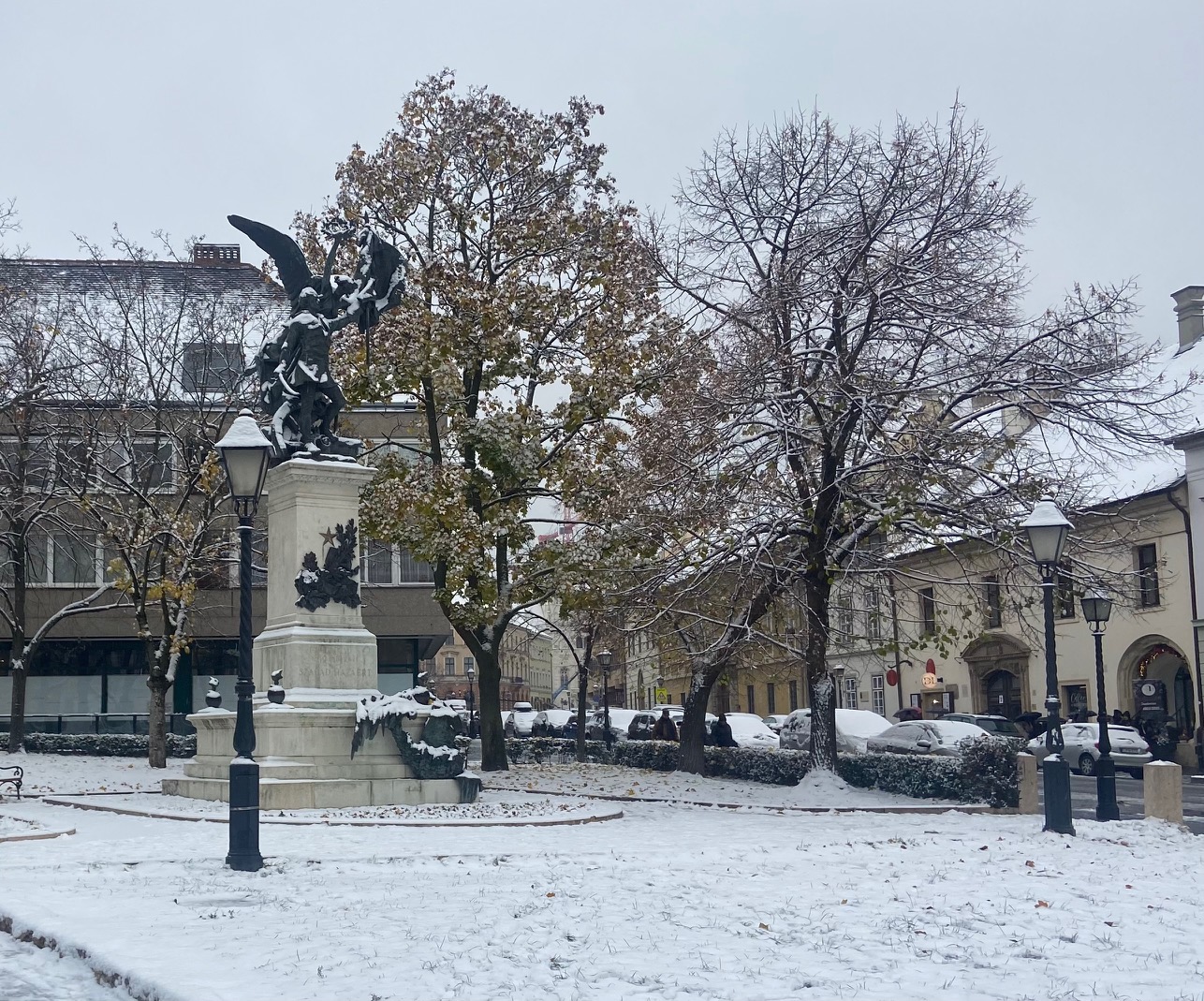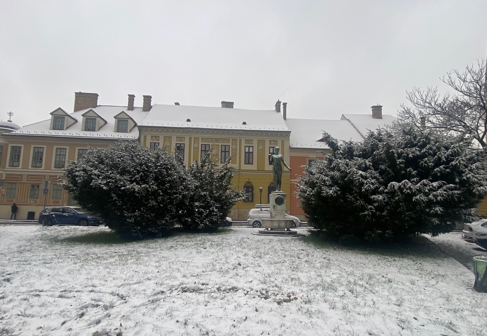(A főképen a Kazinczy-emlékkút a Bécsi kapu tér közepén, mögötte pedig Hatvany Lajos sárgálló palotája látható.)