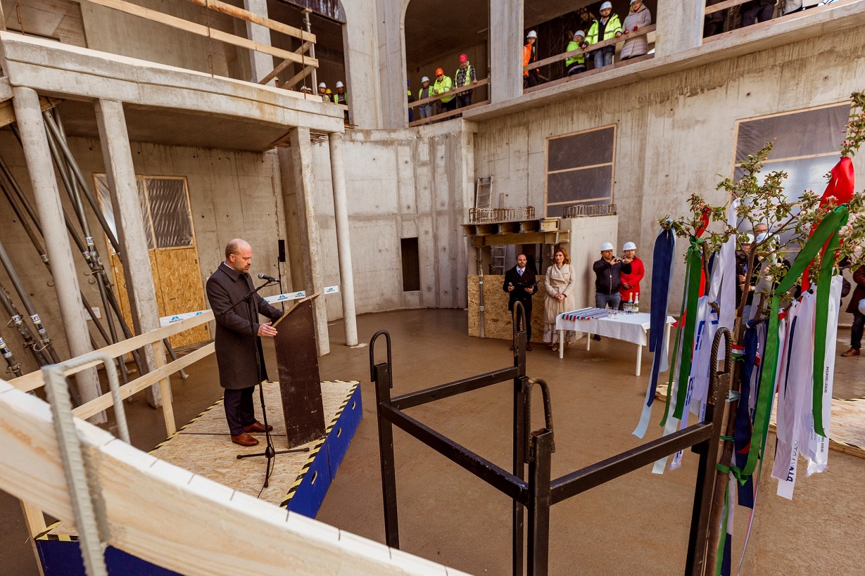 A szokásoknak megfelelően a palota szerkezetének legmagasabb pontjára került a díszes bokrétafa, amelyre Fodor Gergely kormánybiztos, Oravecz László, a Magyar Építő Zrt. műszaki vezérigazgató-helyettese, Habsburg-Lotharingiai Mihály királyi főherceg és Dr. Sulyok Tamás, az Alkotmánybíróság elnöke kötött fel egy-egy nemzeti színű szalagot.