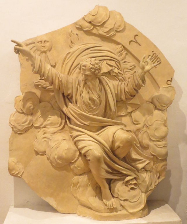 Nos, egészen 1936-ig itt állt egy elegáns ház a mai Alkotás út és Kék Golyó utca találkozásánál (a mai Magyar Jakobinusok tér 5-7. szám alatti bauhaus ház helyén), amelynek új emeleti homlokzatára, pontosabban annak timpanonjába a tulajdonos egy furcsa domborművet rendelt, melyet a Teremtés ihletett. A relief a bolygók, csillagok közt álló Istent ábrázolja, aki éppen a világ megalkotását (!), más néven teremtését vezényli le.