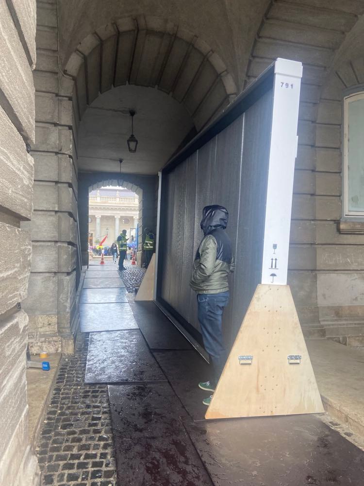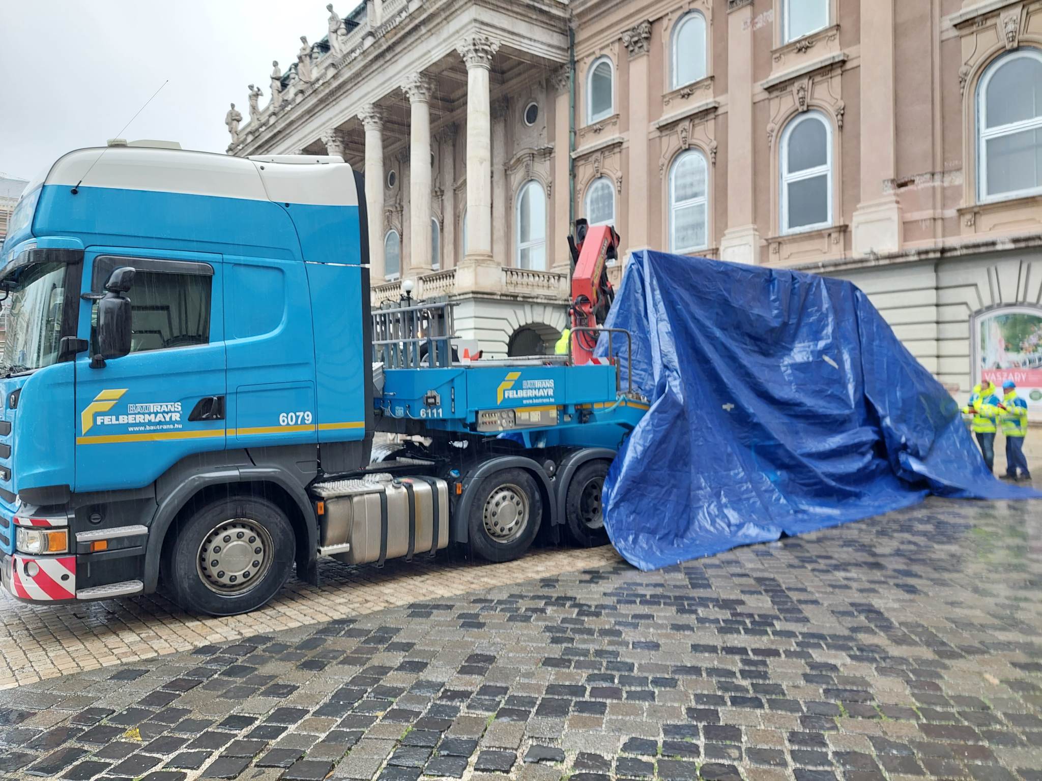 A szakemberek hajnal 5 órától dolgoztak a monumentális festmény elszállításán, amely végül fél 12 körül realizálódott. Külön a műtárgy méretére egyedileg készített „tokban” vitték át a festményt a Savoyai Teraszról a Hunyadi Udvaron várakozó kamionhoz, amelynek „bölcsőjébe” daruval emelték be a nem mindennapi méretű képet.