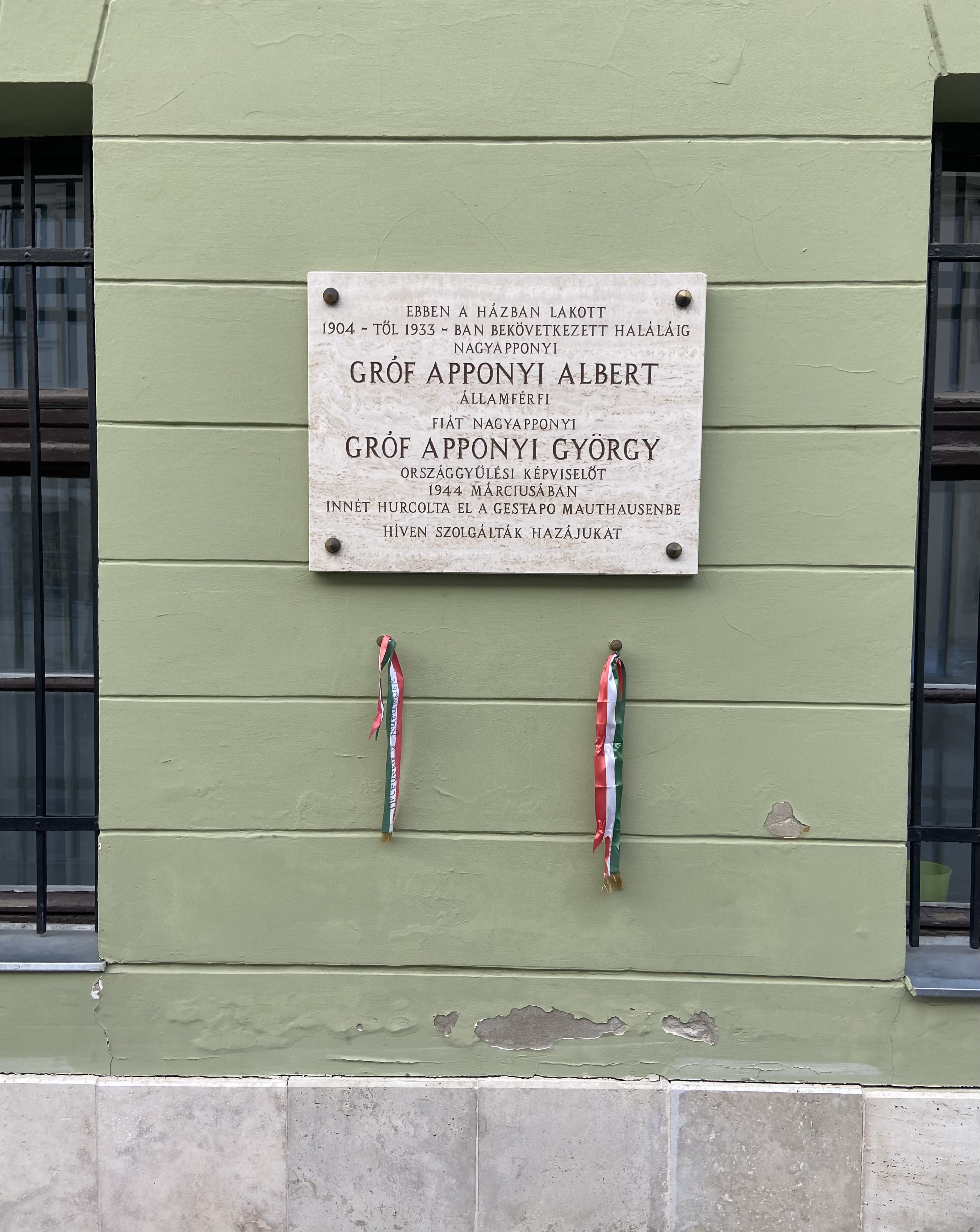 Az egykori Werbőczy utca 21. szám (1948-tól Táncsics utca 17.) alatti Apponyi-palota ma is áll, falán a politikusról és fiáról megemlékező márványtábla található.
