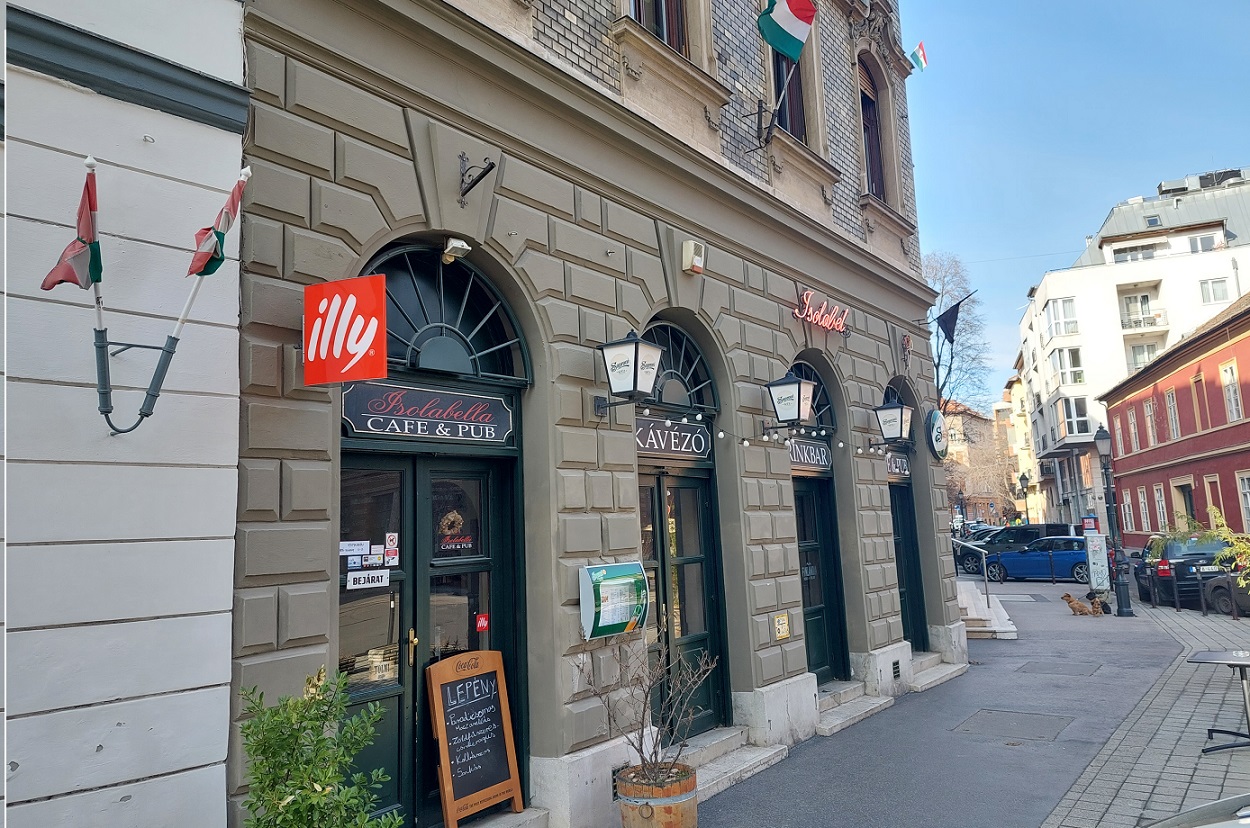 Tiszta, hideg, a régi telekre emlékeztető mínuszközeli időben, és az óra szerint is időben találkozunk a Batthyány tér mellett, az Iskola, a Gyorskocsi és a Markovits Iván utca kereszteződésében. Érdekes ez a hely, hiszen egyszerre két kultikus épület tekintélyes méretű kupoláját is látni innen: az Országházét és a Budavári Palotáét. Alig néhány méterre innen rögtön be is nyitunk első állomásunk, az Isolabella cafe & pub ajtaján.