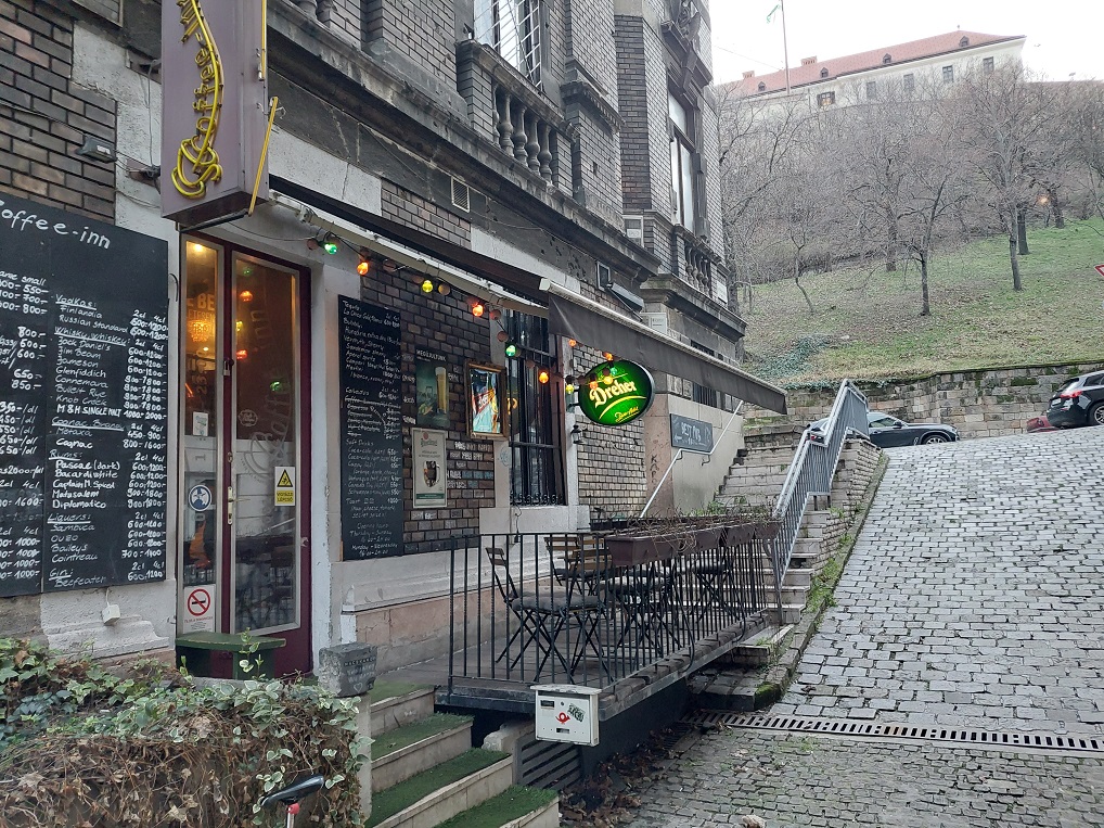 A Coffee Inn (Macskakő 2.0) nevű hely pedig itt, a lépcsőn kezdődik. Belépve szinte azonnal elillan bármi kétely, már ha egyáltalán volt: ez egy kocsma. Minden fizikai részletében, kézzel nem megfogható, de tapasztalható hangulatában, a törzsvendégek egymást szívélyesen köszöntő üdvözlésében, a csapolt sör hívogatásában, és a jól láthatóan nem vastag pénztárcájú turistákra belőtt, nagyon is barátságos árakkal. A jókedvünk el is ragad, a tulajdonossal hamar közös hullámhosszra kerülve pedig még jobban esik a csapolt ipa, e sorok írójának mellé az örök kedvenc, a calvados.
