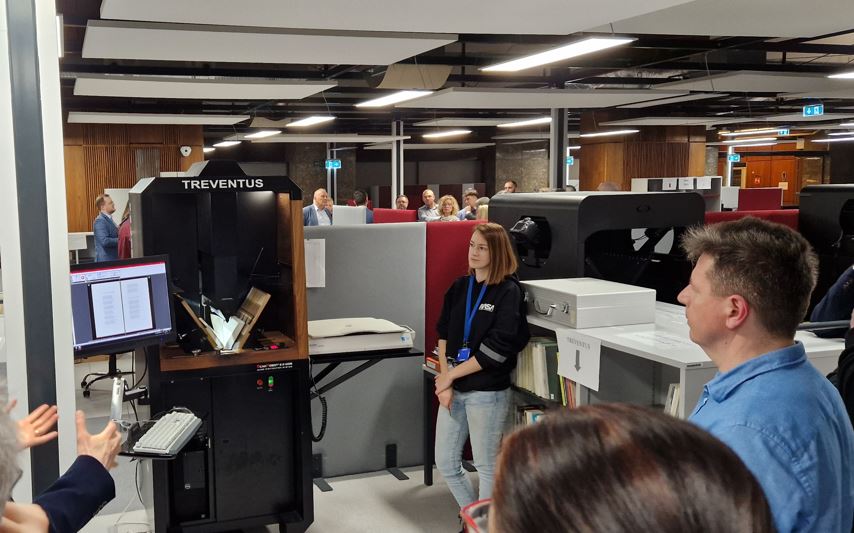 A főigazgató köszöntője után a digitalizáló osztályt, illetve műhely titkaiba minden vendég beleshetett Kukár Barnabás osztályvezető segítségével.