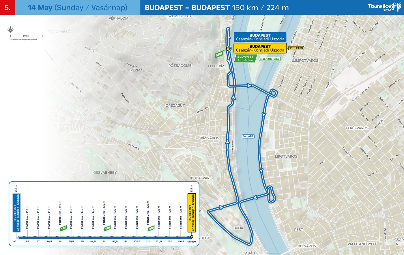 A verseny teljes távját 16 kör alatt teljesítik a versenyzők. A szakasz hossza 150 km lesz – ezzel is tisztelegve a 150 éves Főváros előtt.
