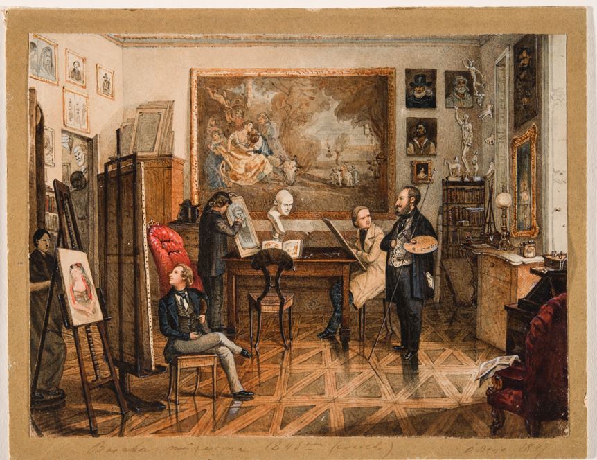Barabás az anyagi sikereknek köszönhetően számos helyen megfordult Európa-szerte, így például Itáliában is. Az ezen az úton készült alkotásaira különösen vigyázott: piros bársonymappába gyűjtve őrizte őket, hasonlóan a korszak vándorfestőihez. Közel másfél évig dolgozott az országban és az itt töltött idő alatt bejárta Firenzét, Velencét, Nápolyt és Rómát. Itáliában sok inspirációt szerzett a későbbi alkotásaihoz, így később az akvarellfestészetben is kibontakozott a tehetsége. A művész nagy teherbírású volt, hihetetlenül sokat dolgozott és a magyaron kívül még öt nyelven beszélt és írt. Az 1840-es évek második felétől a már emlegetett városmajori Barabás-villában fogadta a tanítványokat, így például Than Mórt, aki egy zsánerképén meg is örökítette a műterembelsőt. A különleges akvarell-képen a bal oldali szekrény tetején sorakoznak a festmények, a szobában az anatómiai tanulmányokat segítő szobrok állnak, az asztalon könyv, a falakon pedig vázlatok, tanulmányok és metszetek láthatók. Rendezettség és tisztaság sugárzik a műteremből, amely Barabás egész életművét is áthatja. Különösen érdekes a középső falon látható nagyméretű festmény, ez volt ugyanis az 1835-ben Itáliából hazatért festő első itthon kiállított műve, amellyel azonnal felhívta magára a közönség figyelmét: Paolo Veronese 1580-as, Európa elrablása című alkotásának másolata.